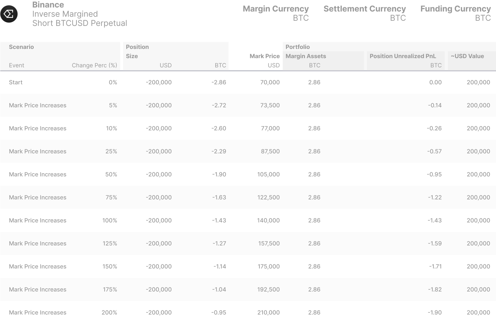 <figure><img src="https://596495599-files.gitbook.io/~/files/v0/b/gitbook-x-prod.appspot.com/o/spaces%2FsBsPyff5ft3inFy9jyjt%2Fuploads%2Fhba79S5HMzjCn4RLKpA3%2FScenario%20Analysis%20-%20Increase%20-%20Binance%20Inverse%20Margined%20Positions.png?alt=media&#x26;token=1487e13a-aff2-41e6-a178-f0fb1b07dae8" alt=""><figcaption><p>Inverse Margined Positions</p></figcaption></figure>