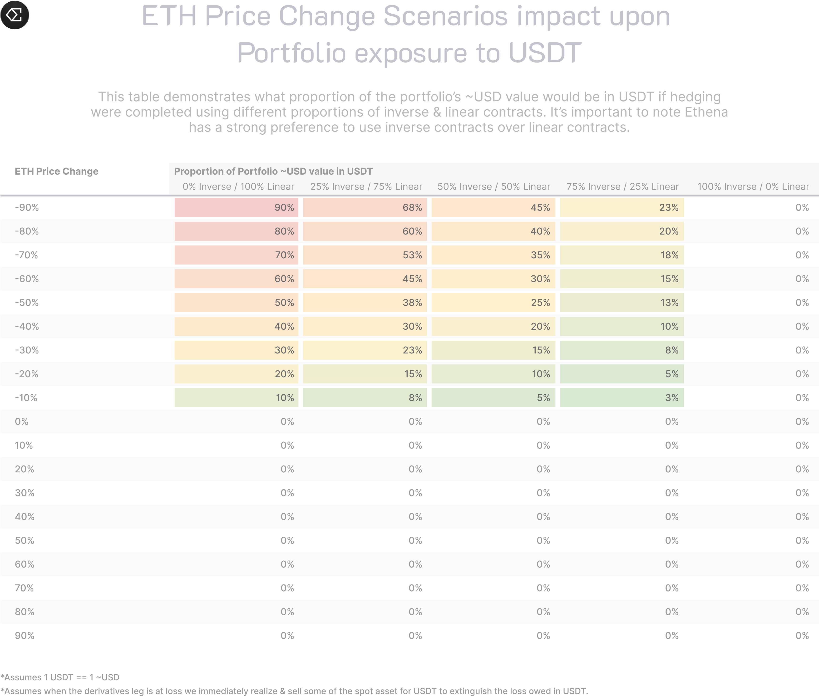 Given Ethena utilizes both inverse/coin & linear margined contracts, a question has been: **"What proportion of the portfolio is in USDT under different rapid price movements?"**